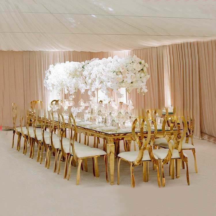 Χρυσός να δειπνήσει γεγονότος ξενοδοχείων γαμήλιων πινάκων ανοξείδωτου πίνακας