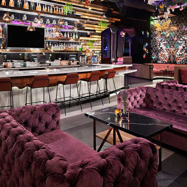 Κλασικό κουμπί καναπέδων σαλονιών λεσχών βελούδου πορφυρό που σχηματίζει τούφες τον καναπέ Bistro