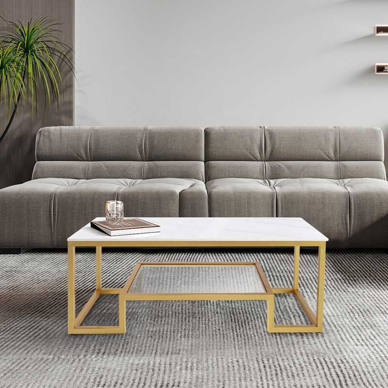 Χρυσός τελειώστε το ακρυλικό χρυσό μέταλλο χρήσεων τραπεζάκι σαλονιού ως ολόκληρο πλαίσιο, το οποίο χρησιμοποιείται ως υποστήριξη και ενισχύει επίσης τη σταθερότητα