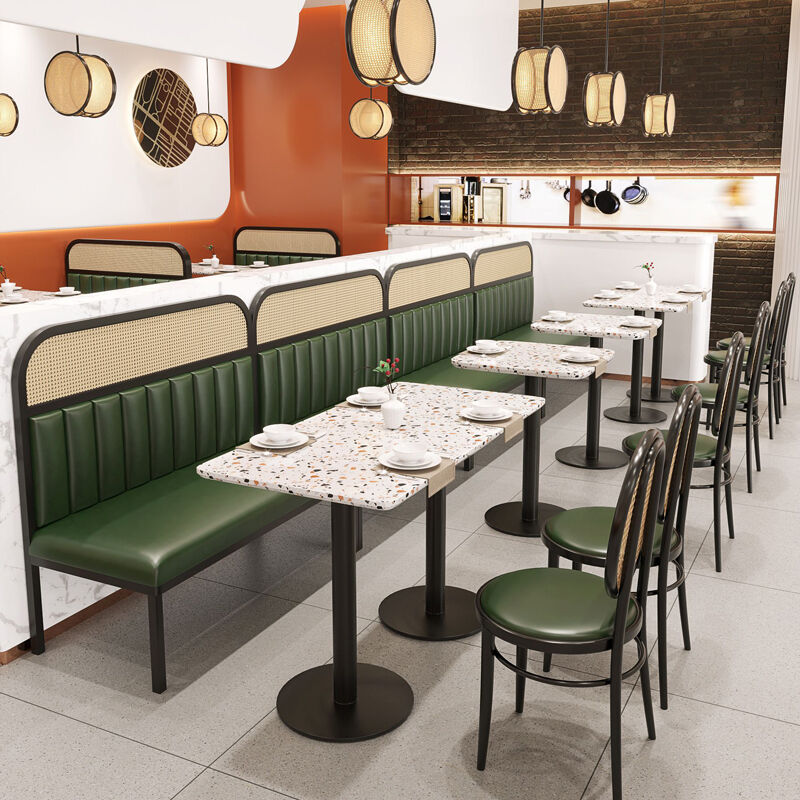 Restaurant Cafe Woven Rattan Bench Sofa Modern Dining Room Catering Sets Booth Seating 6